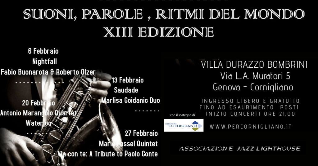 Sabato 16 febbraio alle ore 21:00 Suoni, Parole, Ritmi del Mondo a Villa Bombrini ospi...